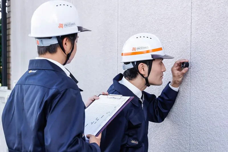 外壁塗装の成功は、事前の診断にかかっています。プロタイムズ市川行徳店では、「住宅劣化診断士」の資格を持つ専門家が、お住まいの状態を隅々まで診断。その結果は、写真付きの「診断報告書」としてお客様にお渡しします。