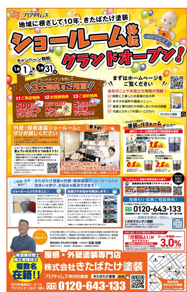 千葉県市川市・浦安市の外壁塗装・屋根塗装なら株式会社きたばたけ塗装(プロタイムズ市川行徳店)