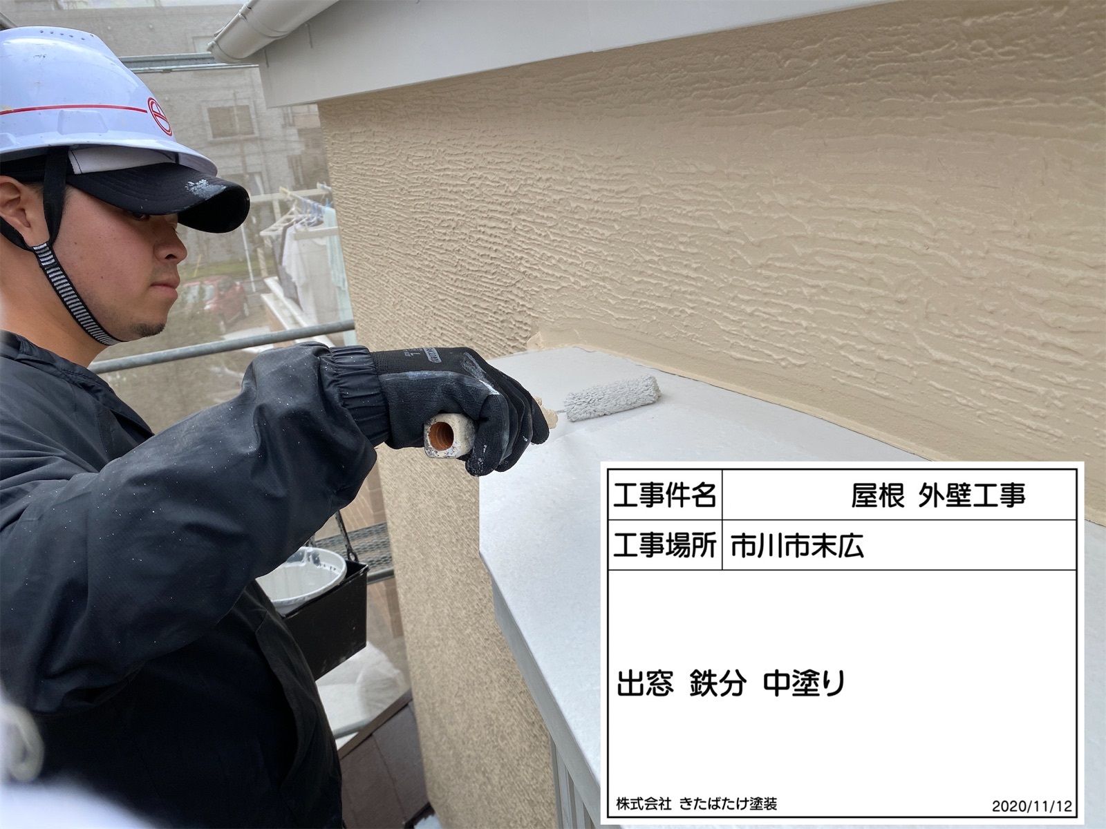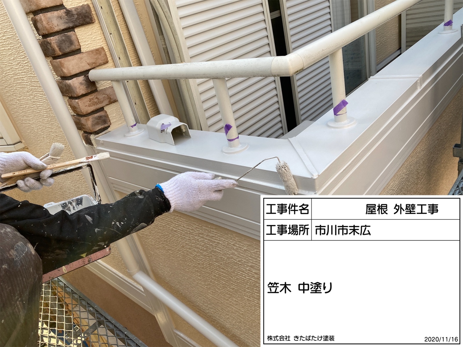 笠木塗装/中塗り