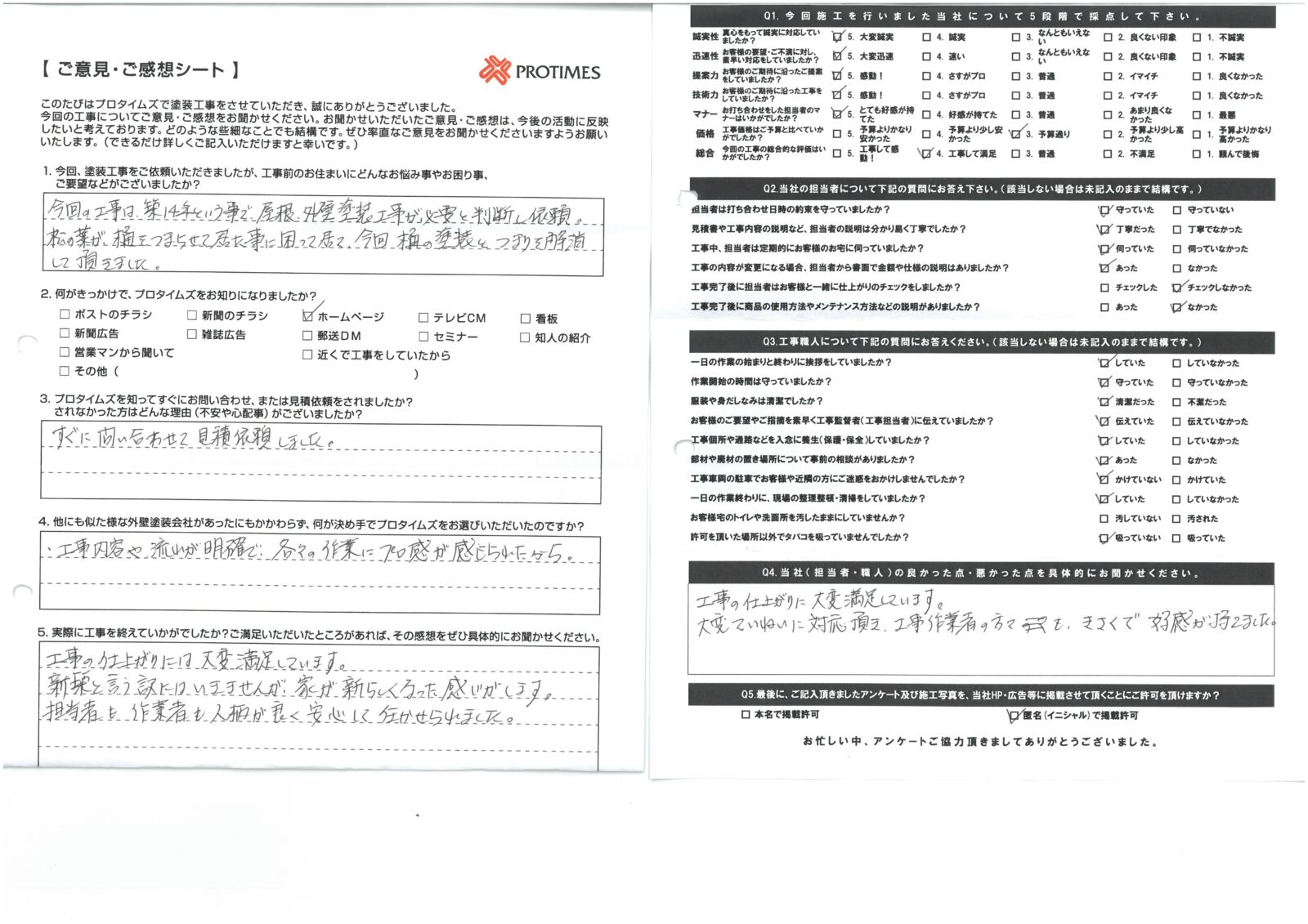工事の仕上がりには大変満足しています。