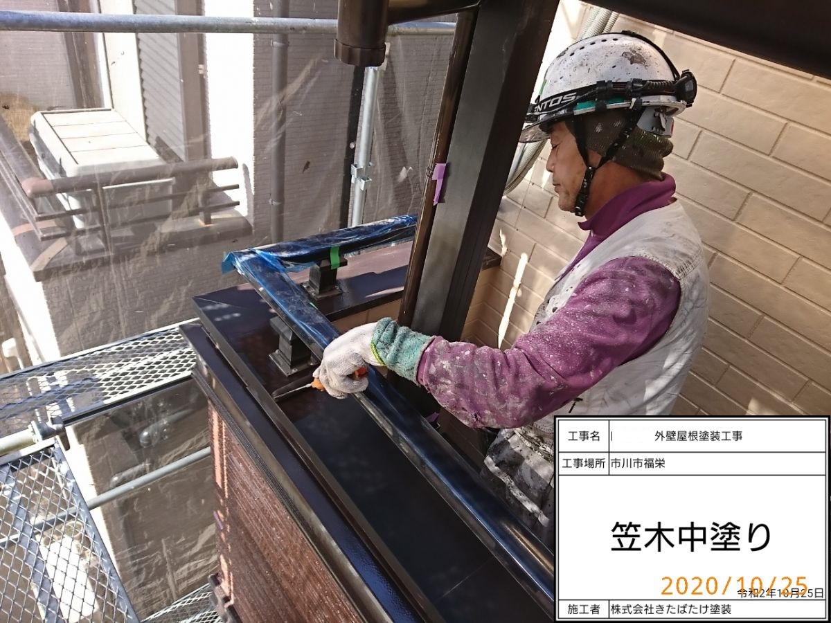 笠木塗装/中塗り