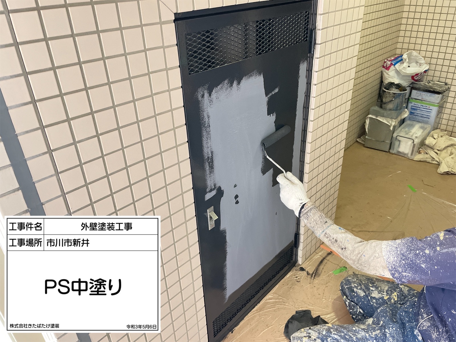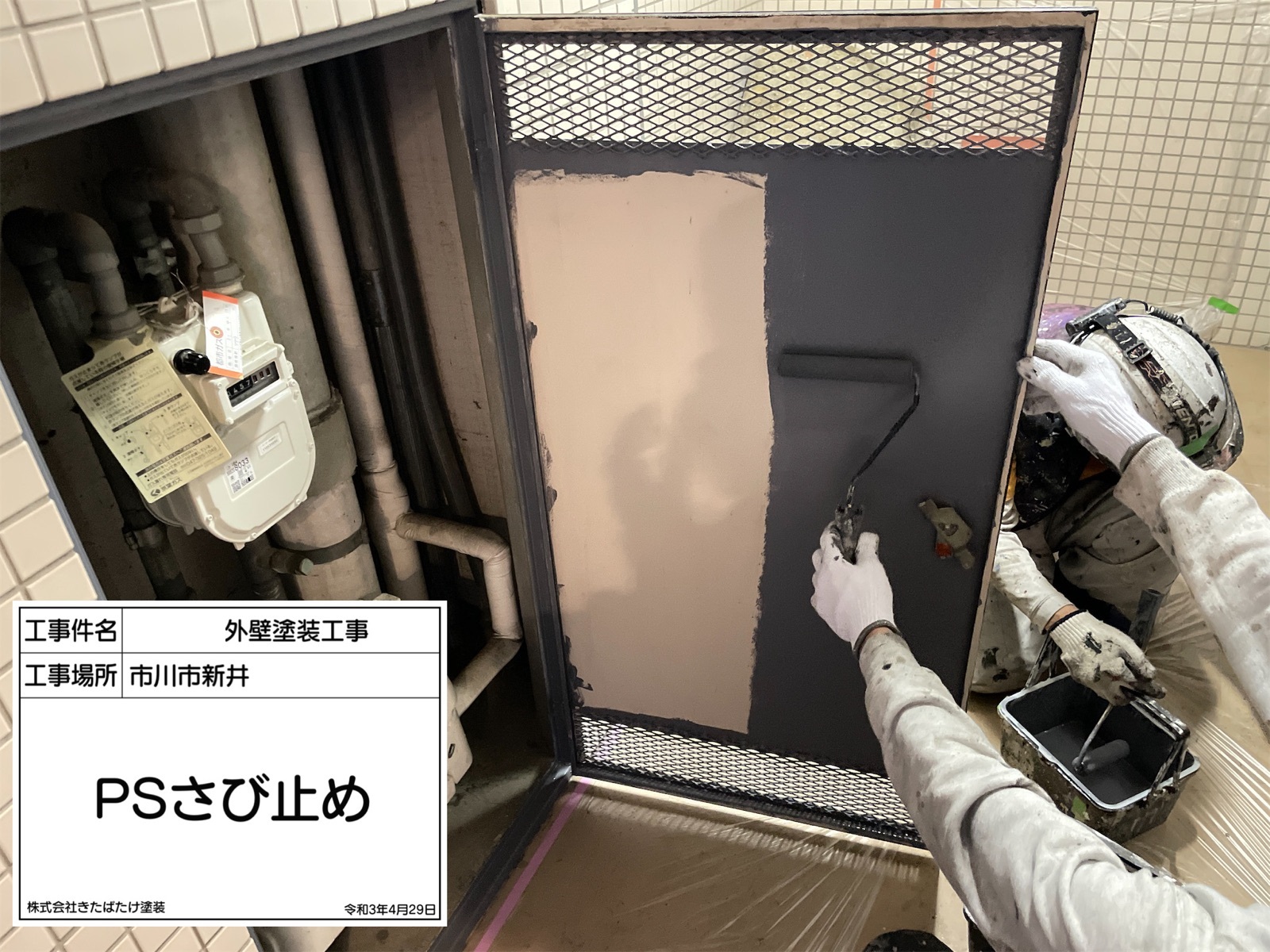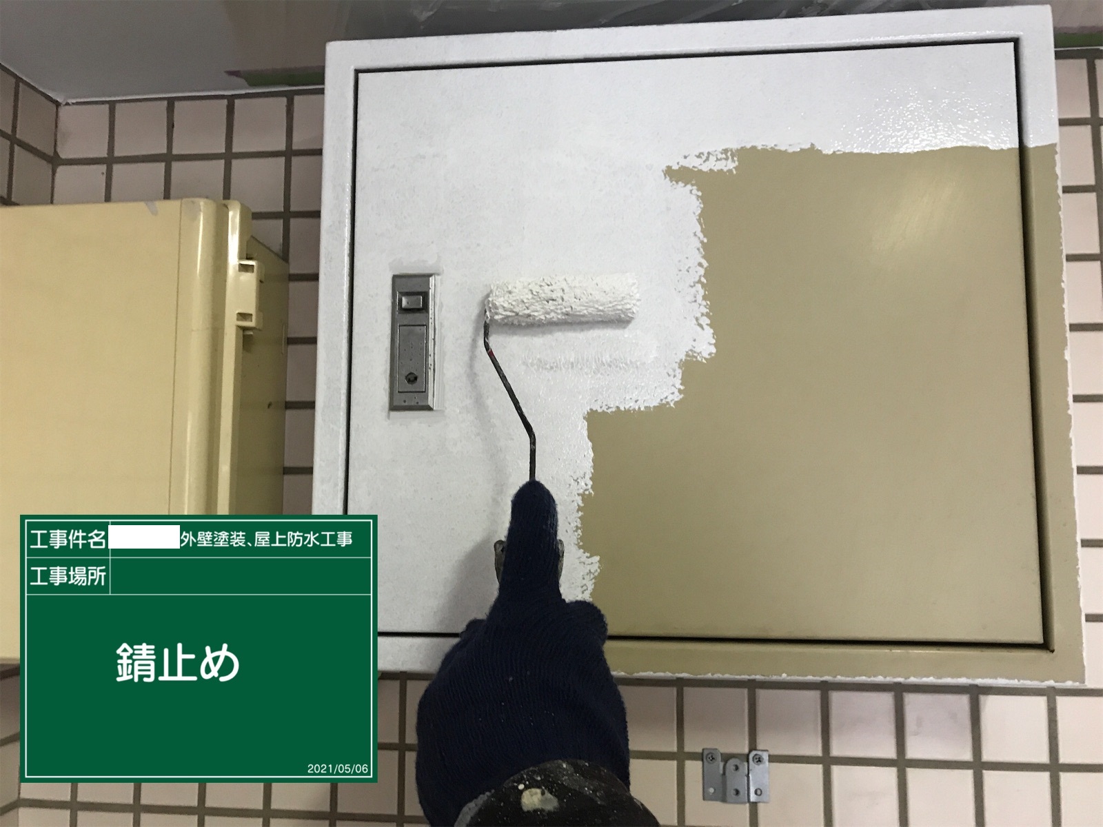 シャッターBOX塗装/中塗り