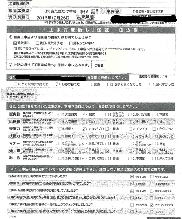 担当者や職人の皆さんが誠実で感じのいい人達でした。