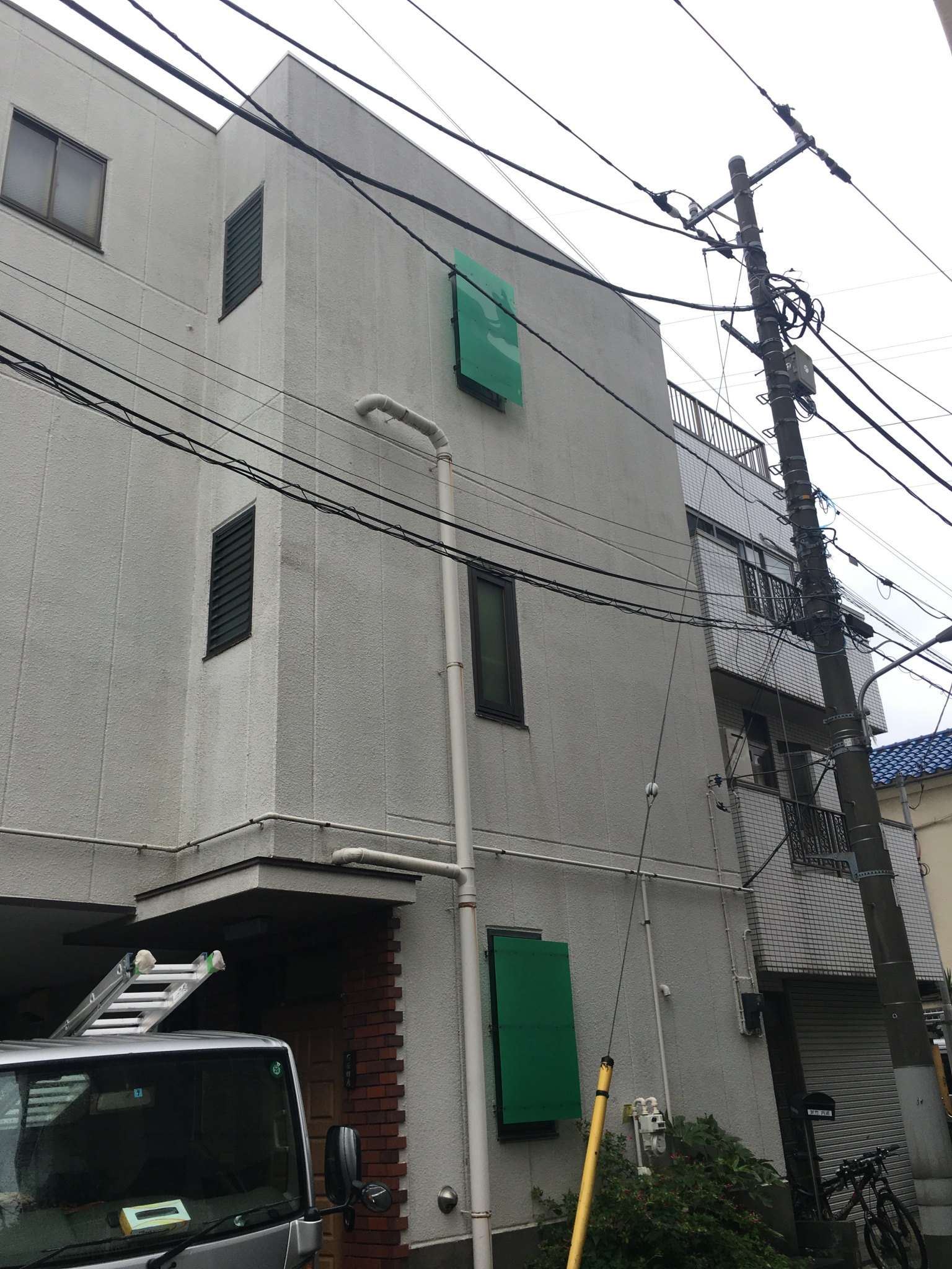 全体的に旧塗膜の色褪せが見受けられます。雨漏りも発生していました。