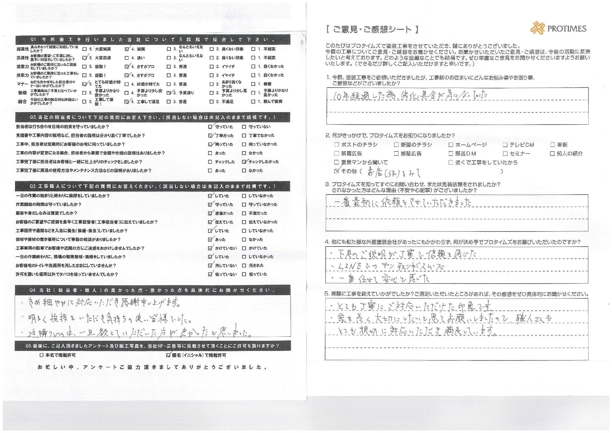 にもかかわらず、何が決め手でプロタイムズ市川行徳店をお選びいただいたのですか?