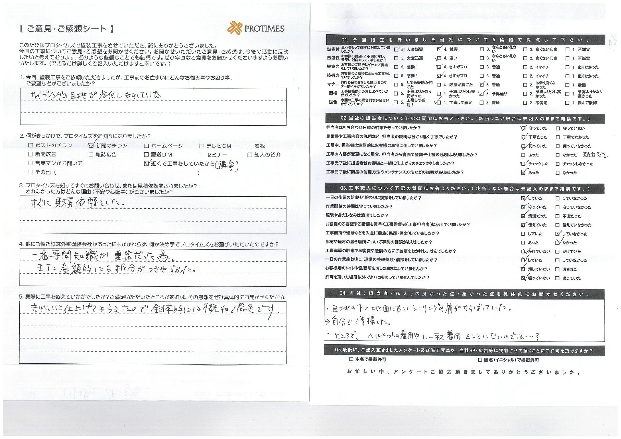 何が決め手でプロタイムズ市川行徳店をお選びいただいたのですか?