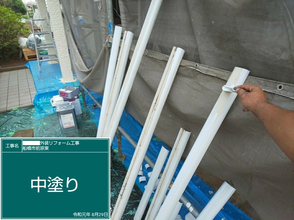 竪樋 上塗り