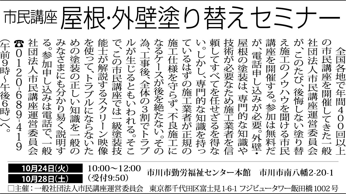10月28日(土)開催 勤労福祉センター 塗り替えセミナー